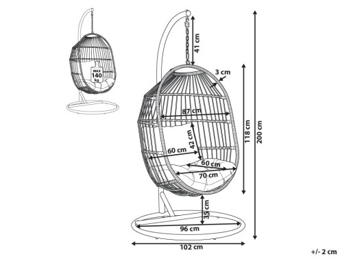Modny fotel wiszący to doskonały dodatek do twojego salonu lub tarasu. Będzie służyć jako interesująca dekoracja i zapewni idealne miejsce do odpoczynku i relaksu. Łańcuch, na którym zawieszony jest fotel, umożliwia wprawienie się w delikatne kołysanie, które pomoże odstresować się po męczącym dniu. Wykonane z mocnego sznura plecione siedzisko zapewnia dużą trwałość, i sprawia, że krzesło zachowa doskonały wygląd przez cały czas.