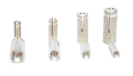 Kotwa rozporowa z wewnętrznym gwintem metrycznym, tuleja radełkowana, wykonana z mosiądzu