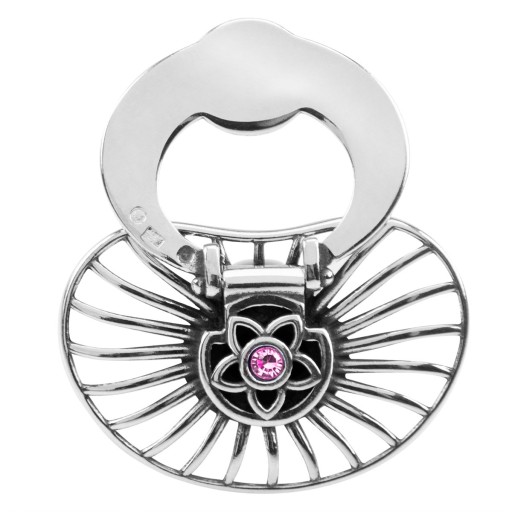 Proponujemy Państwu prześliczny srebrny smoczek z różowym kamieniem. W smoczku znajduje się schowek z "klapką" na pierwszy ząbek. Pięknie zdobiony towar cyrkoniami, listkami oraz kwiatkami.