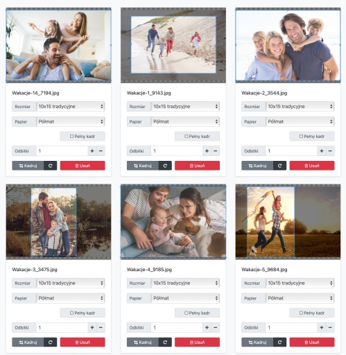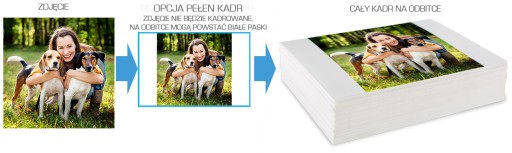 Aplikacja online do wysyłania zdjęć daje Ci możliwość wybrania opcji "Pełny kadr". Ta opcja kadrowania gwarantuje, że całe Twoje zdjęcie (bez przycięcia) znajdzie się na odbitce.