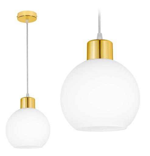 Nowoczesna lampa sufitowa - żyrandol w kolorze złotym z białym kloszem. Designerski styl, który doskonale wkomponuje się w Twoje wnętrza.