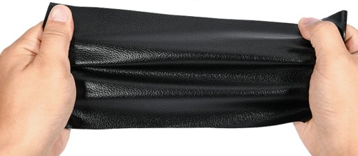 Materiał jest nie tylko trwały, ale także elastyczny, co doskonale widać na załączonym obrazku obok. Ta kombinacja cech pozwala na idealne dopasowanie ekoskóry do każdej, nawet najbardziej wymagającej powierzchni.