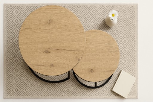 - Możliwość wsunięcia mniejszego stolika pod większy.