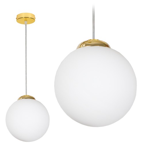 Nowoczesna lampa sufitowa - żyrandol w kolorze złotym z białym kloszem. Designerski styl, który doskonale wkomponuje się w Twoje wnętrza.
