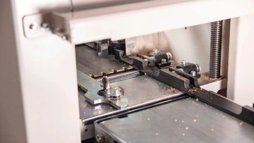 Warto zauważyć, iż mechanizm posuwu zapożyczony został z większego modelu MP360 i cechuje się regulowaną prędkością w zakresie 3-15 m/min.