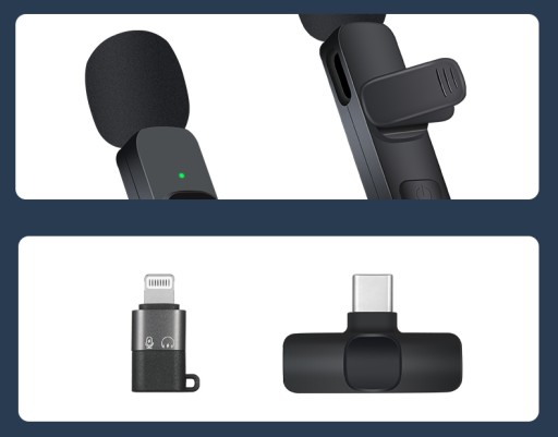 Urządzenie jest wyposażone w mały mikrofon, który umożliwia dyskretną i wygodną transmisję dźwięku bez konieczności trzymania mikrofonu w ręku. Odbiornik mikrofonu podłączamy do telefonu/tabletu/komputera (złącze USB-C + adapter na Lightning).