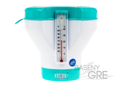 Niektóre dozowniki GRE zawierają również termometr, który ma produkt dwa w jednym i pozwala uniknąć pływania kilku elementów w basenie.