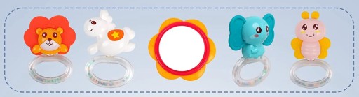 - w zestawie 4 zawieszki grzechotki i lusterko
