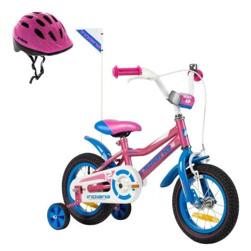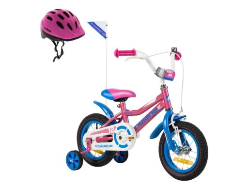 Rower dziecięcy INDIANA Roxy Kid 12 cali dla dziewczynki Różowy + Kask rowerowy VÖGEL VKA-920G Różowy dla Dzieci (rozmiar XS)