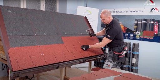 Wykonywanie pokryć dachowych na sztywnym podłożu z desek lub innego materiału umożliwiającego wbijanie gwoździ, na dachach o nachyleniu 12-75°.