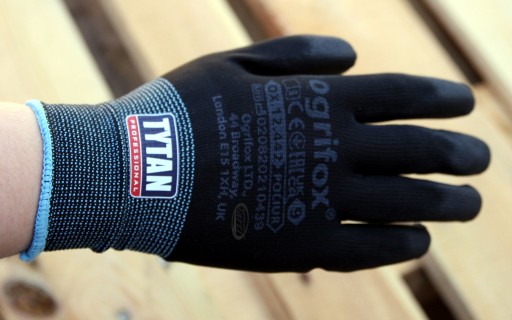 Rękawice ochronne wykonane z poliestru, powlekane poliuretanem.