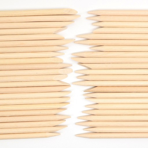 Profesjonalne patyczki kosmetyczne dla ergonomicznego użytkowania, zakończone do szpica z jednej strony, z drugiej ścięte pod kątem 45 stopni.
