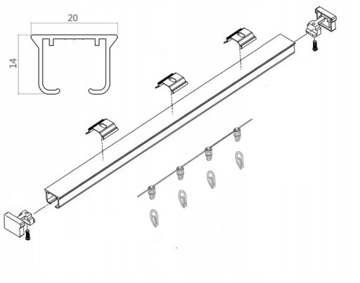 Przedmiotem tej aukcji jest komplet karnisza sufitowego szynowego MS o długości 250cm jednotorowego (14mm x 20mm) z systemem WAVE co 8cm