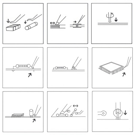 ◉ Zestaw narzędzi do lutowania, pomagający zachować czystość na stanowisku pracy.
