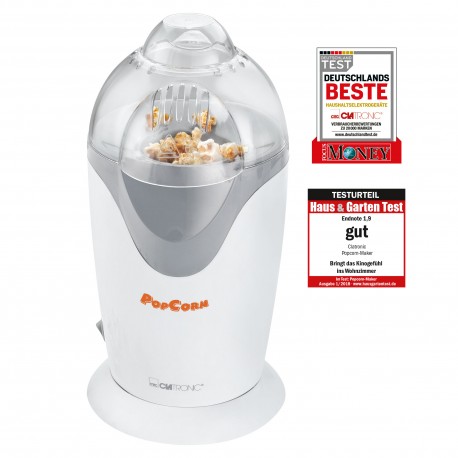 Maszynka to niezwykle praktyczne urządzenie dla wszystkich miłośników popcornu. Automat praży popcorn za pomocą gorącego powietrza w zaledwie 2 minuty. Zaletą urządzenia do popcornu Clatronic jest brak konieczności użycia tłuszczu, co powoduje mniejszą kaloryczność i lepszy smak. Urządzenie jest łatwe w obsłudze i utrzymaniu czystości, a unikatowy wygląd ozdobi każdą kuchnię.