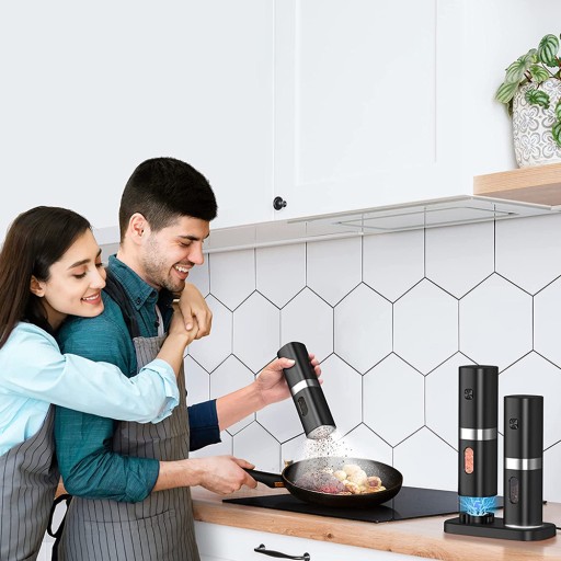 - Zestaw elektrycznego młynka do pieprzu jest dostarczany z kablem typu C, aby w pełni naładować 2 młynki jednocześnie w ciągu 1 godziny. Podczas ładowania lub pracy wbudowane niebieskie światło LED automatycznie się zapala, aby ułatwić obserwację bez przesady