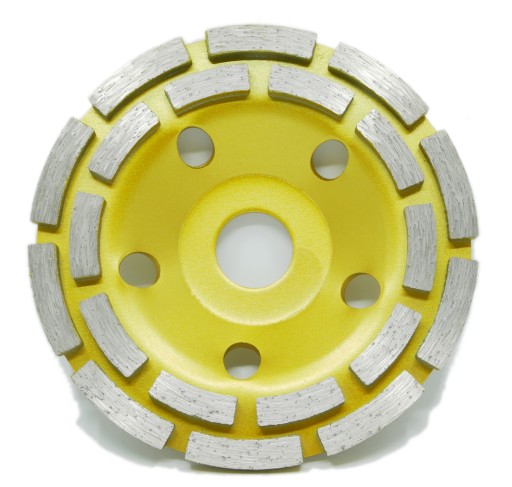 Tarcza diamentowa garnkowa dwurzędowa do zgrubnego szlifowania materiałów budowlanych tj. beton. Idealna do usunięcia nadmiaru kleju, bądź wyrównania nierówności posadzki.