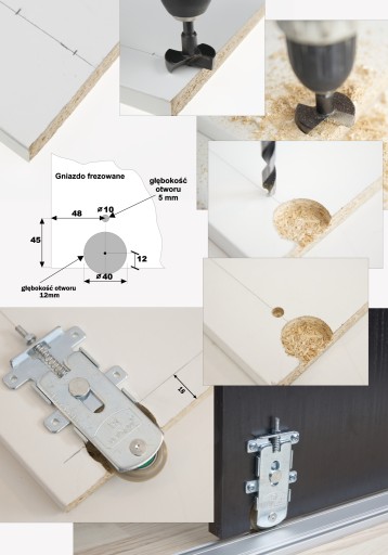 Dla ułatwienia montażu można dokupić, dostępny na innej aukcji, szablon do wykonania otworów pod wózek w płycie.