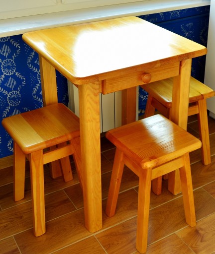 Stół jest wykonany w całości z litego drewna sosnowego.