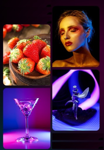 - Możliwy jest wybór koloru światła. Szeroka paleta barw w palecie RGB pozwala wykonać fotografie z nasyceniem koloru żółtego, zielonego, niebieskiego, czerwonego, pomarańczowego, fioletowego czy innych, tworząc bardzo ciekawe obrazy fotograficzne.