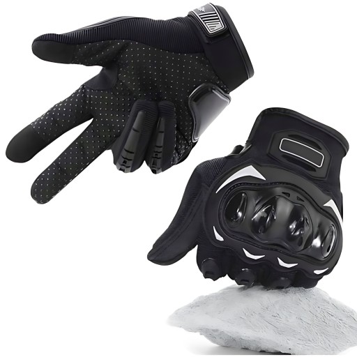 Rękawice posiadają antypoślizgową silikonową powłokę oraz osłony kostek, palców i całej dłoni, co zapewnia maksymalne bezpieczeństwo podczas jazdy. Dodatkowo są one przystosowane do obsługi ekranów dotykowych, dzięki czemu można używać telefonu bez konieczności zdejmowania rękawic