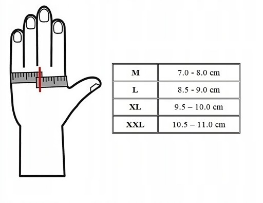 - Obwód dłoni 8.5-9 cm