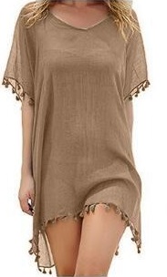 Ta tunika oversize, wykończona eleganckimi frędzlami w stylu boho, pasuje do każdej figury i ukrywa wszelkie wady, jednocześnie podkreślając letnią opaleniznę.