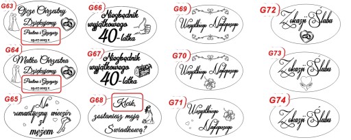 - Plakietka z dedykacją - do wyboru z podanych wzorów na dole aukcji (kolor plakietki biały)