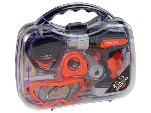 Cały zestaw zamknięty jest w poręcznej walizce. W środku znajdują się narzędzia, wykonane z plastiku. Wkrętarka zasilana jest na baterie, po włożeniu baterii i naciśnięciu przycisku wiertło kręci się i dodatkowo wydaje realistyczny dźwięk. W trakcie pracy dla bezpieczeństwa może założyć okulary ochronne i maskę. W trakcie precyzyjnej pracy przyda się mała taśma centymetrowa, a do wycięcia piła. Wszystkie elementy ułatwia pracę oraz nauczą obsługi.