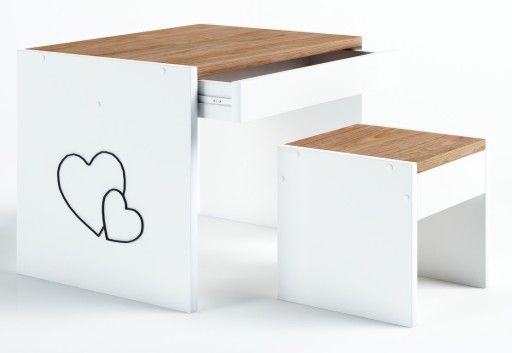 - Siedzisko wykonane jest z płyty meblowej, co gwarantuje wytrzymałość i trwałość, a całość składa się z krzesełka i oddzielnego stolika, który jest idealny do nauki, rysowania i pisania.Krzesełko jest łatwe do czyszczenia, więc nie trzeba się martwić o zabrudzenia.