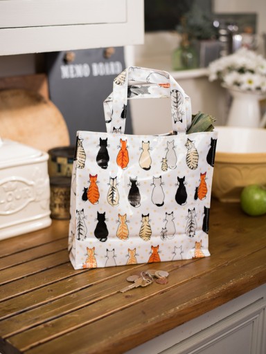 Nowa odsłona najstarszej i najpopularniejszej kolekcji, Cats In Waiting w dalszym ciągu cieszy miłośników kotów na całym świecie. Ten projekt ilustruje szeroki wybór siedzących tyłem kotów. Torba wykonana w 100% z bawełny z powłoką PCV ma miejsce na wszystkie codzienne niezbędne rzeczy i jest wyjątkowo praktyczna, w przypadku zabrudzenia wystarczy przetrzeć wilgotną ściereczką. Posiada magnetyczne zapięcie oraz wewnętrzną kieszeń zamykaną na zamek.