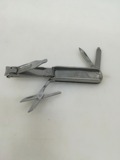 Contains man sized super strong and sharp nail clippers for the hardest nails. Clippers spring out from the ergonomically shaped Stainless steel body. It also houses a sharp blade, nail file, and flat edged screwdriver and a pair of self sprung sharp scissors.