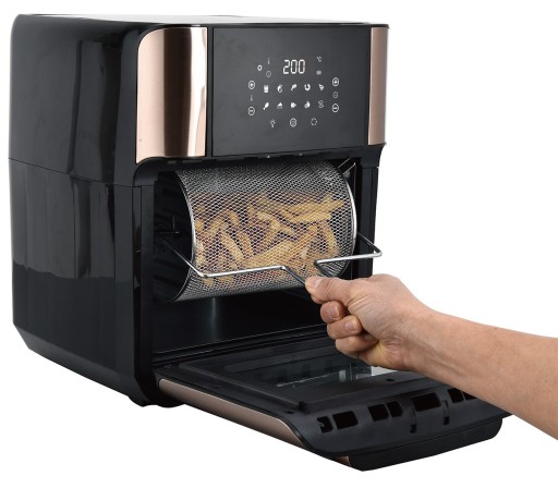 - Funkcje: Frytownica z obrotowym koszem, rożen, obrotowy szaszłyk, rozmrażanie, pieczenie: mięsa, warzyw, ciast, grill.