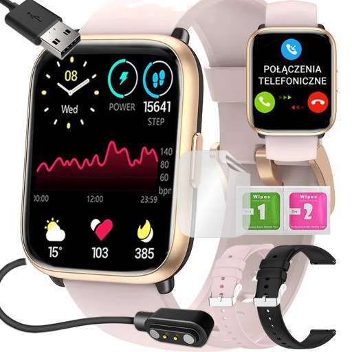 ⭐SMARTWATCH ZEGAREK POLSKIE MENU ROZMOWY SPORT SMART WATCH DAMSKI PINK 2 PAS ⭐