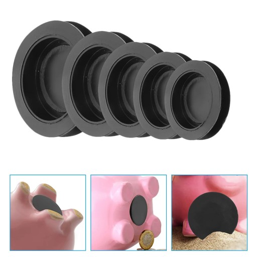 Gumowa pokrywa z korkiem może pomóc w rozwiązaniu problemu skarbonki bez pokrywy, a także może być używana do ochrony lub zakrywania otworów oraz ochrony pudełek przed narożnikami lub krawędziami.