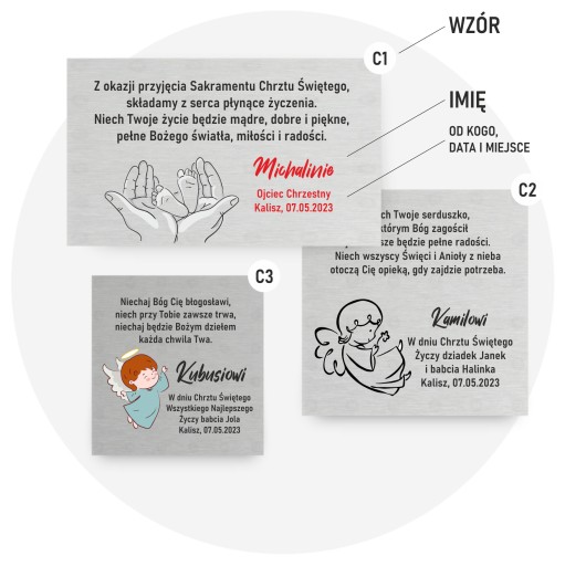 Spersonalizuj go podając nam dane do grawera zaznaczone we wzornikach na czerwono.