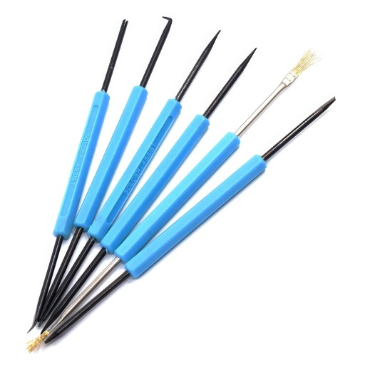 ◉ Zestaw narzędzi do lutowania, pomagający zachować czystość na stanowisku pracy.