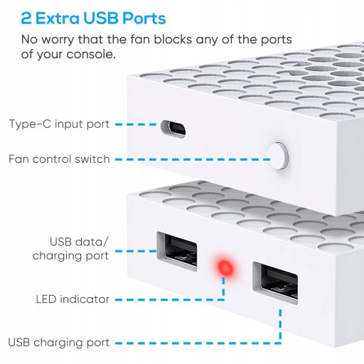 - Ulepszone wentylatory chłodzące: Wbudowane 2 szybkie wentylatory chłodzące o nowej konstrukcji. Nie musisz się martwić o przegrzanie konsoli. Dzięki przyciskowi ON/OFF wentylatora utrzymuje funkcjonalność i poprawia żywotność;
