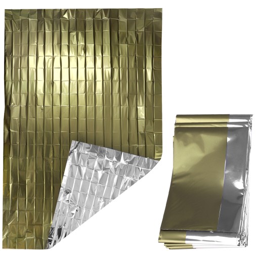 - Ochrona przed przegrzaniem: strona w kolorze złotym powinna się znajdować od strony ciała - odbijanie promieni słonecznych zmniejsza nagrzewanie ciała.