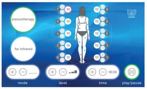 Aparat kosmetyczny Presoterapia posiada 4 gotowe programy zabiegowe, jest prosty w obsłudze. Panel posiada dotykowy ekran do szybkiej i sprawnej obsługi urządzenia kosmetycznego.