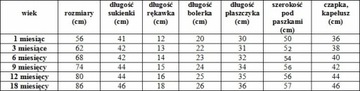ROZMIARY DOSTĘPNE W NASZEJ OFERCIE