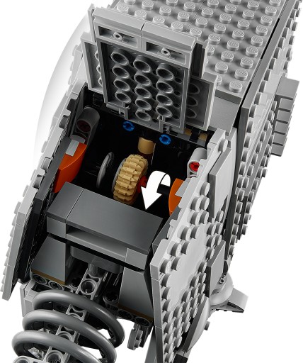 - AT-AT ma kokpit na trzy minifigurki LEGO®, rozkładane panele, sprężynowe miotacze, ścigacz, wciągarkę, dolny właz, przez który Luke może wrzucić detonator termiczny, oraz inne detale pozwalające na kreatywną zabawę.