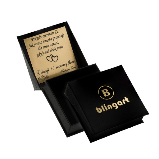✅ Grawerowana tabliczka umieszczona jest wewnątrz eleganckiego sztywnego pudełka sygnowanym logo marki Blingart