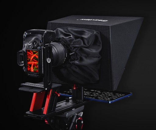Desview TP150 to profesjonalny teleprompter stworzony do pracy z kamerami, lustrzankami oraz bezlusterkowcami. Dzięki zastosowaniu uniwersalnej osłony precyzyjnie dostosujesz go do wielkości posiadanego obiektywu. Urządzenie wyposażono w duże lustro wykonane z 26-warstwowego szkła rozdzielającego wiązkę światła. Regulowany uchwyt pozwoli połączyć teleprompter z tabletem o maks. przekątnej 15,3". Pilot Bluetooth umożliwi zdalne sterowanie tekstem, którym możesz zarządzać z poziomu bezpłatnej aplikacji. Teleprompter wykonano z wysokiej klasy stopu aluminium. Z łatwością zainstalujesz go na statywie za pomocą gwintów 1/4" lub 3/8". W zestawie nie zabrakło też solidnej walizki. Urządzenie pozwoli Ci zaoszczędzić setki godzin spędzanych na niekończącym się powtarzaniu ujęć!