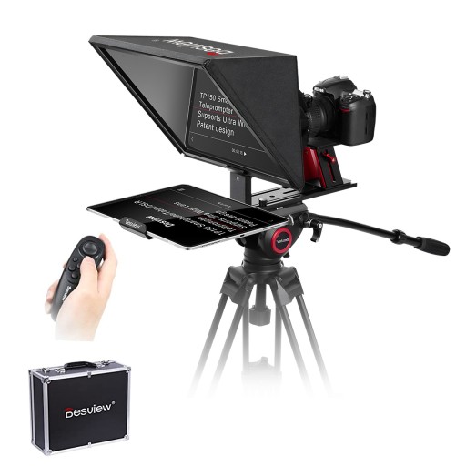 + DESVIEW TP150 - TELEPROMPTER DO APARATÓW KAMER - UCHWYT NA TABLET 100-295MM + PILOT + WALIZKA