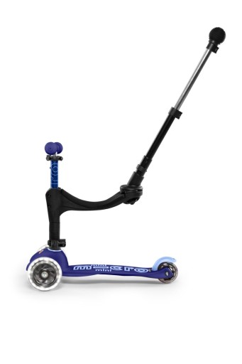 Micro Mini 3w1 Deluxe LED MMD145 w najnowszym granatowym kolorze to połączenie jeździka z drążkiem teleskopowym, jeździka oraz hulajnogi. Model rośnie wraz z dzieckiem, a to wszystko za sprawą wymiennych elementów. Firma Micro proponuje unowocześniony model ze świecącymi kółkami dostosowany do potrzeb dzieci od 1 do 5 roku życia. Maksymalna waga użytkownika w wersji z siodełkiem wynosi 20 kg, z kolei na hulajnodze 50 kg.