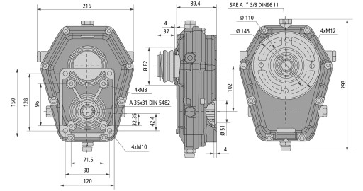 Przekładnia idealnie nadaje się do napędu pomp hydraulicznych grupy 2 (20) i 3 (30) z kołnierzem typu europejskiego.