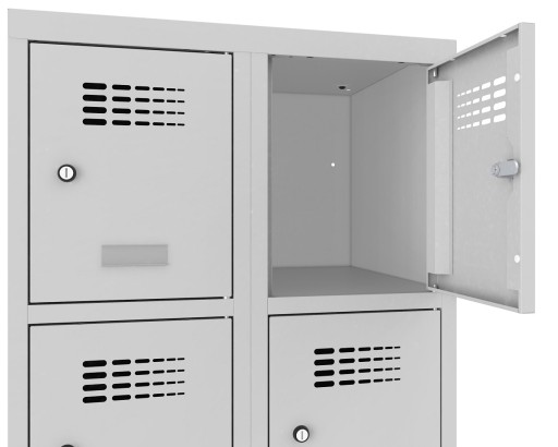 Szafa skrytkowa składa się z dziesięciu pojedynczych kontenerów, zamykanych na osobne zamki. Każdy z nich wyposażony został w specjalne otwory wentylacyjne oraz praktyczną etykietę, umożliwiającą jego podpisanie.