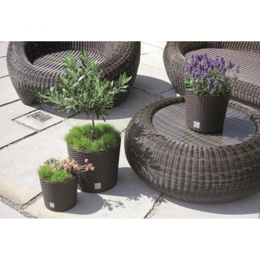 Doniczka z kolekcji Rato Round o fakturze przypominającej plecionkę z naturalnego rattanu. Dzięki klasycznej, czystej formie pozwala bez ograniczeń kreować unikatowe wnętrza i przestrzeń wokół domu, godząc różne style i upodobania. Doskonałe uzupełnienie publicznej strefy wypoczynkowej, np. ogródków kawiarnianych. Doniczka sprzedawana razem z wkładem.
