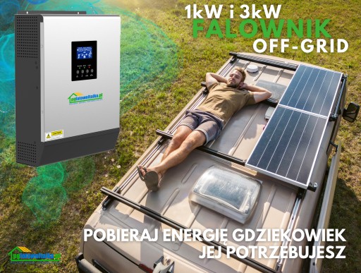 - Falownik można przyłączyć do sieci i pobierać z niej energie w momencie niewystarczających warunków dla paneli słonecznych. Urządzenie może współpracować z siecią energetyczną, generatorem energii, panelami fotowoltaicznymi i akumulatorami.